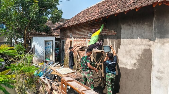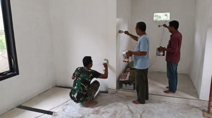 Semangat gotong royong terlihat saat anggota Satgas TNI Manunggal Membangun Desa (TMMD) Ke-127 Kodim 0819/Pasuruan bersama warga menyelesaikan tahap finishing rehabilitasi Rumah Tidak Layak