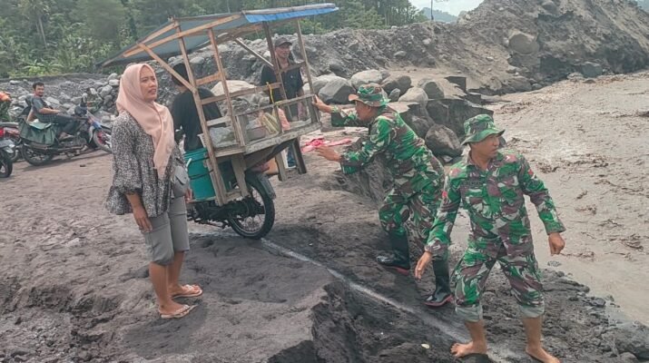 Lumajang – Kepedulian TNI terhadap keselamatan masyarakat kembali terlihat di wilayah terdampak erupsi Gunung Semeru. Bati Tuud Koramil 0821-15/Tekung, Pelda Rudi Rusmianto, bersama empat