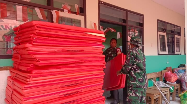 Bati Tuud Koramil Pronojiwo dan Satgas Bersihkan Ruang Kelas untuk Pulihkan Aktivitas Pengungsi