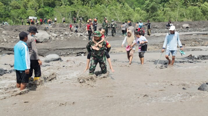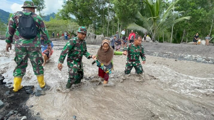Lumajang — Di tengah derasnya banjir lahar dingin Gunung Semeru, prajurit TNI dari Kodim 0821/Lumajang kembali menunjukkan dedikasi tanpa batas dalam melindungi keselamatan masyarakat.