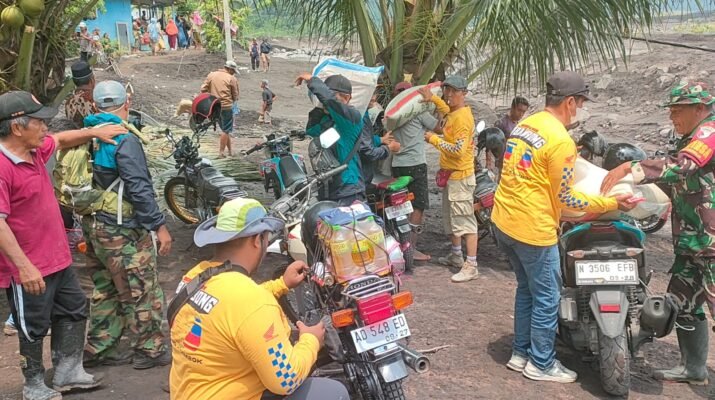Babinsa Sumberwuluh dan Relawan Gerak Cepat Salurkan Logistik ke Warga Terdampak Lahar Dingin Semeru
