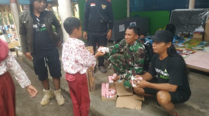 LUMAJANG – Di tengah keterbatasan fasilitas pasca-bencana, upaya memulihkan kondisi psikologis anak-anak terdampak erupsi Gunung Semeru terus digencarkan. Anggota Kodim 0821 Lumajang, Sertu Ely