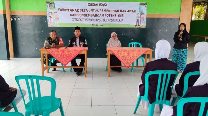 Bangorejo — Dalam rangka menumbuhkan kesadaran generasi muda terhadap pentingnya pemenuhan hak anak, Babinsa Bangorejo Kopka Yono Adi Susanto mengadakan kegiatan sosialisasi Forum Anak Desa di SMP Full Day Bangorejo, Kamis (6/11/2025). Kegiatan ini bertujuan untuk memperkenalkan peran Forum Anak Desa sebagai wadah partisipasi anak dalam pembangunan masyarakat.