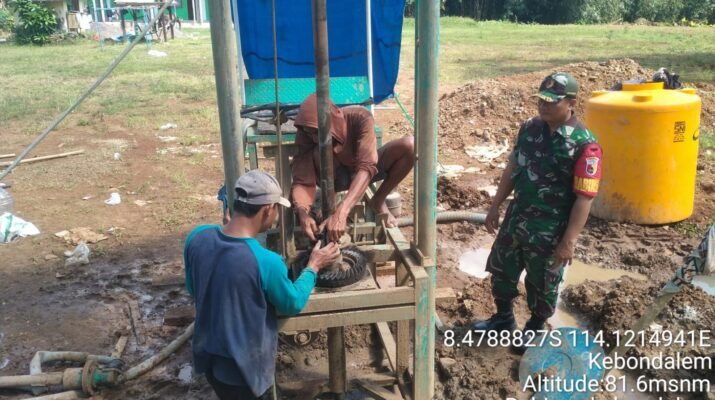 Bangorejo – Dalam rangka mendukung program pembangunan sarana air bersih bagi masyarakat, Babinsa Desa Kebondalem, Sertu Eko Widayanto, melaksanakan kegiatan pendampingan dan monitoring pengerjaan sumur bor yang berlokasi di Dusun Kebonrejo, Desa Kebondalem, Kecamatan Bangorejo. Kegiatan berlangsung pada Rabu, 06 Agustus 2025, mulai pukul 10.00 WIB hingga selesai.