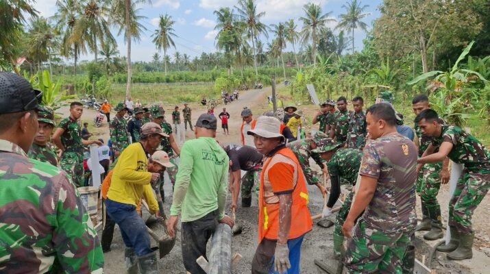Banyuwangi – Sabtu (09/08/2025), Satuan Tugas TNI Manunggal Membangun Desa (TMMD) ke-125 Kodim 0825/Banyuwangi melaksanakan kegiatan pengecoran jembatan penghubung desa di Kecamatan Siliragung, Kabupaten Banyuwangi. Pembangunan jembatan ini merupakan salah satu sasaran fisik utama TMMD yang bertujuan meningkatkan aksesibilitas dan mobilitas warga antarwilayah.
