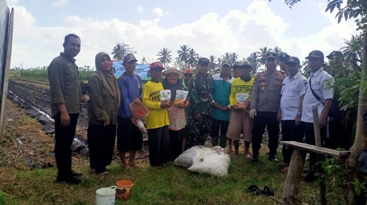 BANYUWANGI – Sinergi tiga pilar kembali terjalin, kali ini melibatkan TNI, Polri, dan Pondok Pesantren Mansya’ul Huda dalam upaya meningkatkan ketahanan pangan. bertempat di lahan sawah milik Bapak Brahim di Dusun Gempoldampit, Desa Kedungwungu, Kecamatan Tegaldlimo, dilaksanakan kegiatan penanaman jagung serentak seluas 0,5 hektar. Kegiatan ini juga melibatkan para santri ponpes yang turut berpartisipasi. Kamis, (07/08/2025), Pukul 08.00 Wib.