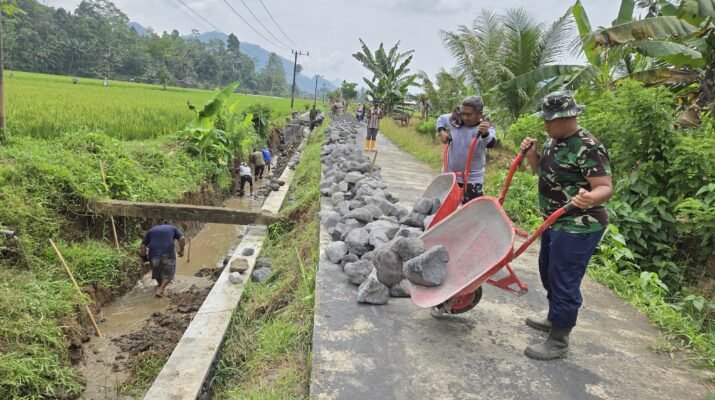 Suara Batu yang jatuh berpadu dengan tawa warga terdengar akrab di Dusun Krajan II, Desa Lebakharjo, Kecamatan Ampelgading. Di bawah teriknya matahari, personel Satuan Angkatan Laut (TNI AL) bersama Kodim 0818/Malang-Batu dan masyarakat setempat bahu-membahu melanjutkan pekerjaan saluran irigasi dalam program TMMD ke-126.