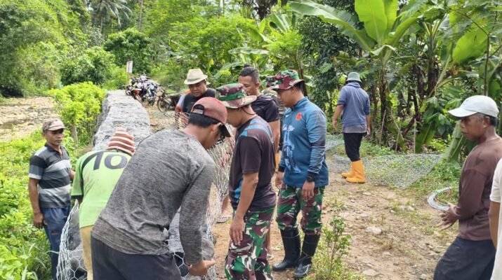 Satgas TMMD ke-126 dan TNI AU Laksanakan Pemasangan Bronjong di Sungai Sengkaring Lebakharjo